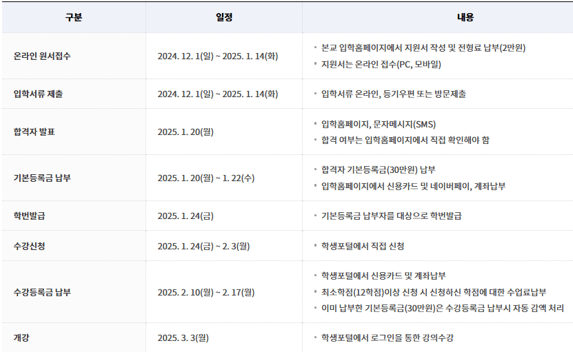아래는 편입, 입학 일정표입니다.
