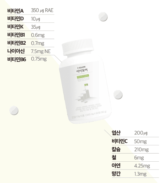 아이하이의 아이모어는 엄청 특별한 성분을 가진 영양제가 아니라 유아용 종합비타민으로 생각해 주시면 됩니다.