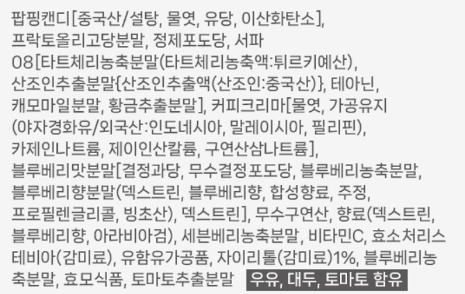 중국산/설탕, 물엿, 유당, 이산화탄소: