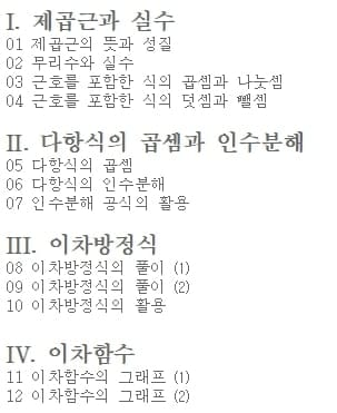 이번 글에서는 수학이란 과목의 목차가 왜 중요한지를 설명하고 그 목차를 활용해 어떤 식으로 수학 공부를 해야 하는지에 대해서 설명해 드리도록 하겠습니다. 중학교 수학은 고등학교 수학의